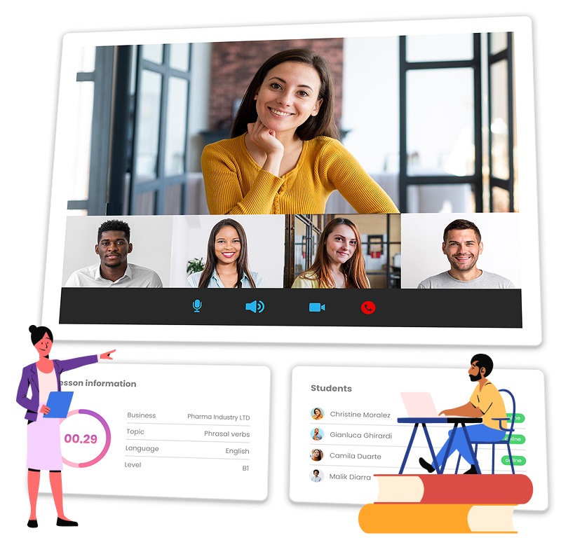 A complete, ready-to-use platform designed for language schools and trainers seeking to digitalise their activities.